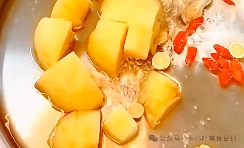 火候掌控:選用砂鍋最佳,其導熱均勻的特性最宜藥性釋放。將蘋果塊平鋪鍋底,依次放入黃芪、麥冬,注入清水至鍋身2/3處。先以武火煮至沸滾,期間可見水面浮起細膩泡沫,這是食材精華析出的標誌。