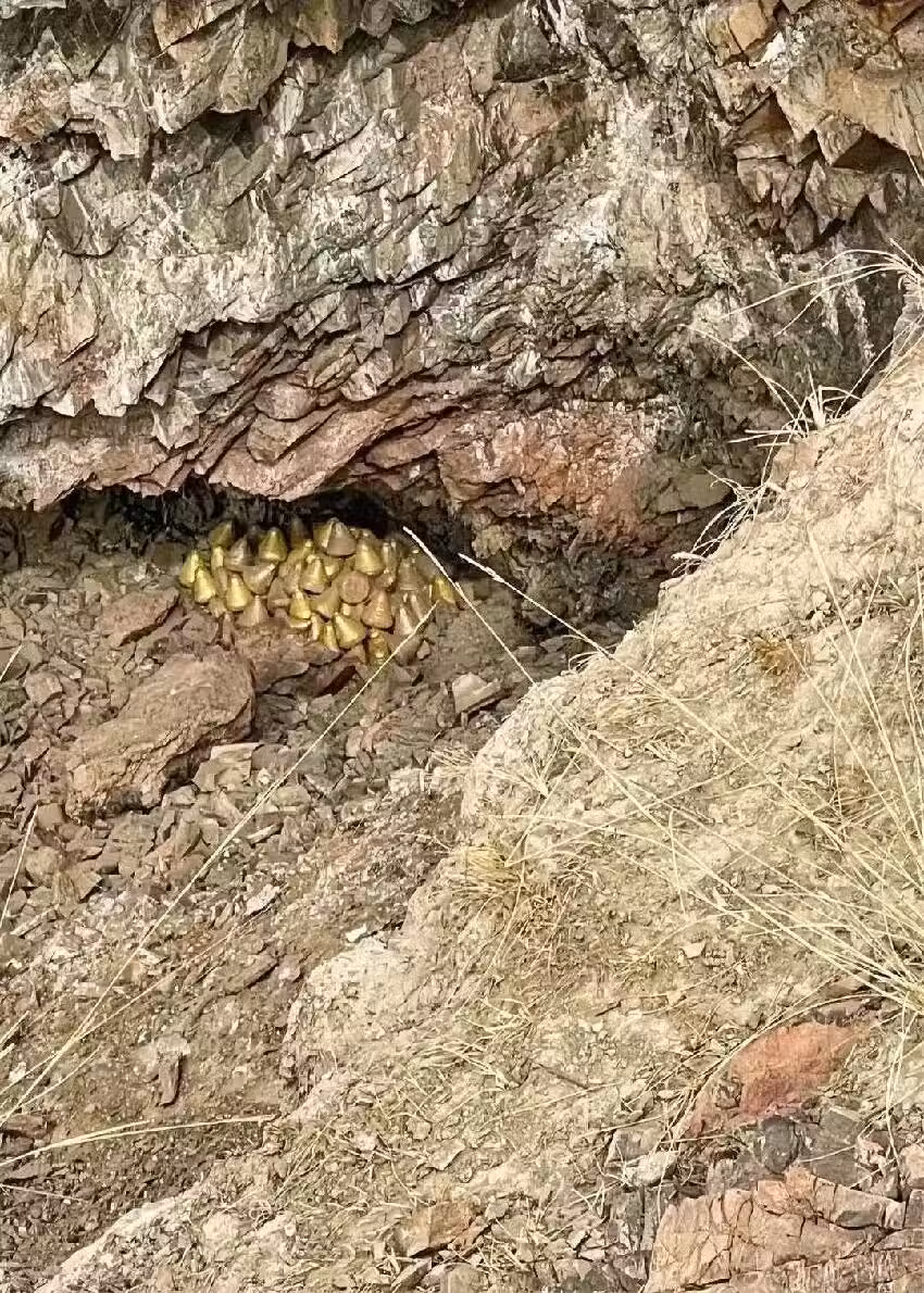 目擊者描述,這些不明物體散落在山間步道旁,遠看像撒落一地的金豆子,在陽光下折射出耀眼反光。