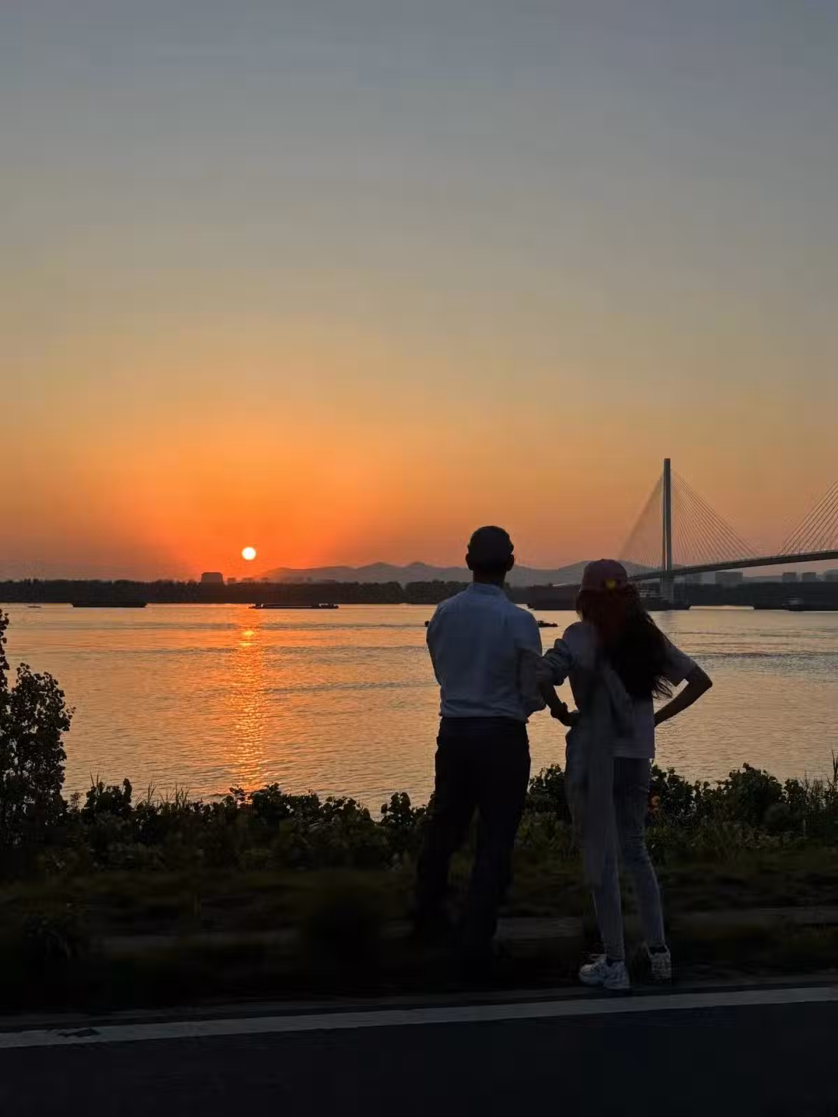 他們夫妻倆站在江邊,一起觀看日落,有路人拍到了他們的背影,好像童話故事裡的場景,非常夢幻,讓人感受到了愛情的強大!