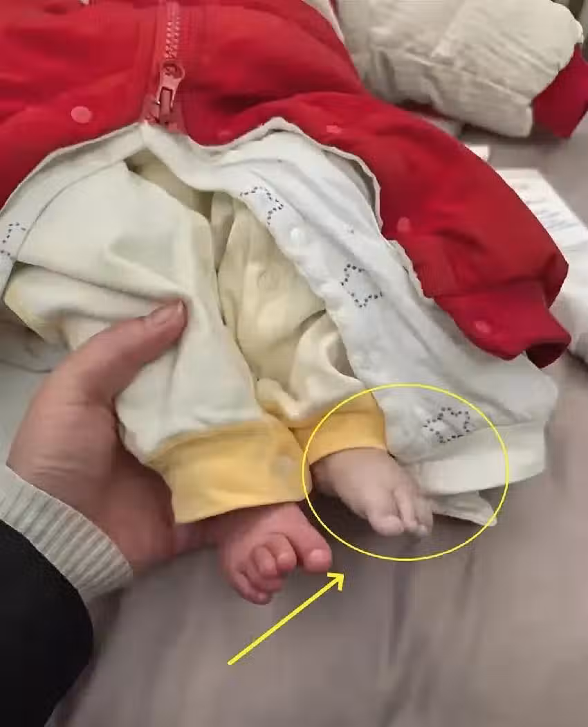 一位母親在哄寶寶睡覺時,意外發現寶寶的兩隻小腳顏色截然不同。
