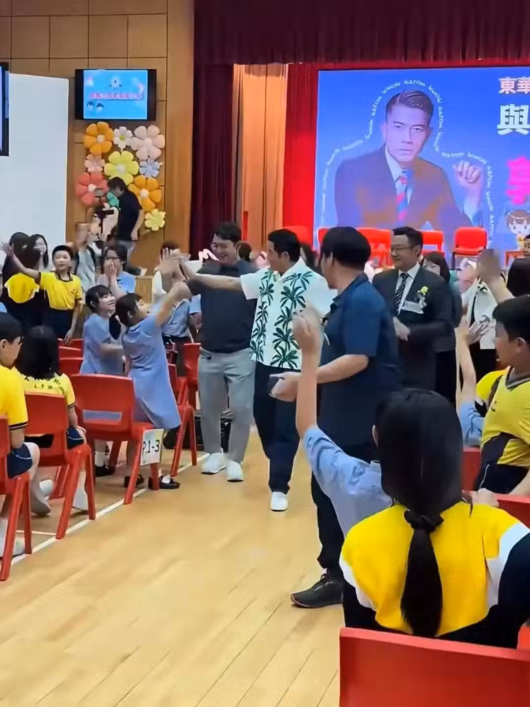 郭富城到女兒學校參加家長會,和學生一起唱歌,像出席粉絲見面會