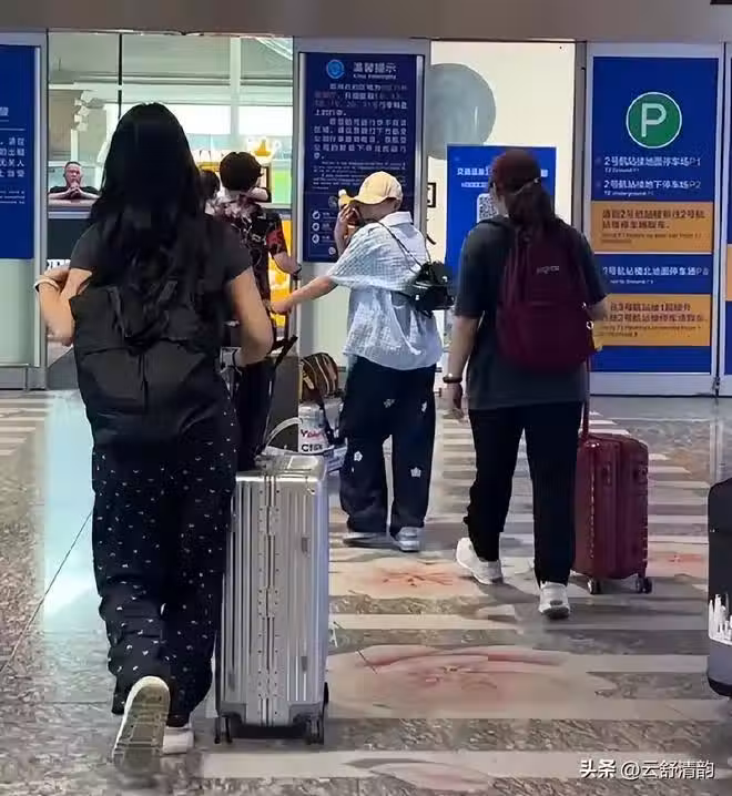 相比背包很小,她推的行李箱可以說是隊里最大的,畢竟是出去比賽,行李箱中估計放了很多平時比賽需要的輔助工具。