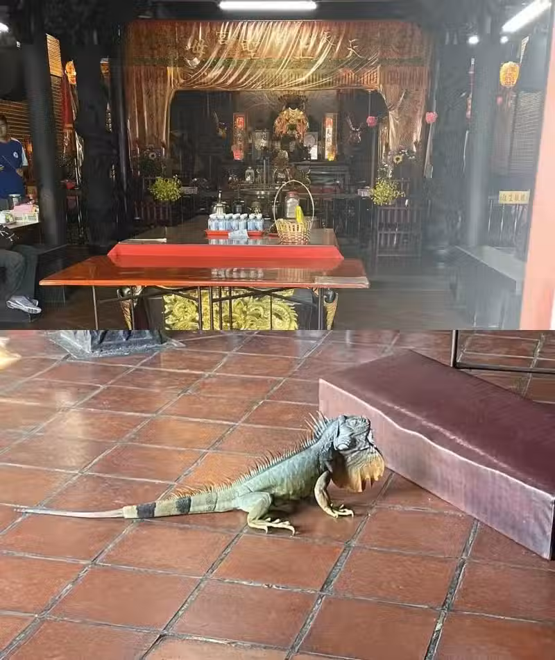 天后宮驚見「綠鬣蜥參拜半小時」 信眾擲筊感動「是媽祖的指示」
