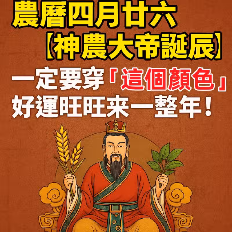 農曆四月廿十六【神農大帝誕辰】一定要穿「這個顏色」好運旺旺來一整年!