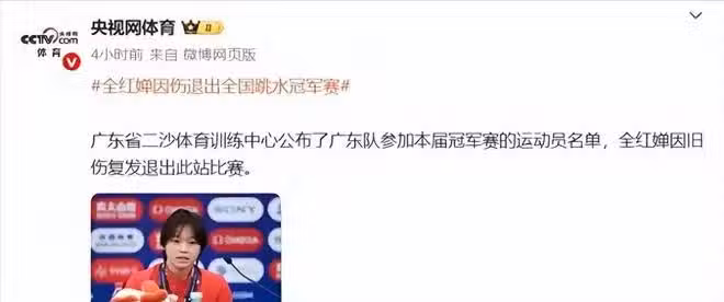 那就是身為「雙子星」之一的全紅嬋,因傷退出了這次在武漢舉辦的全國跳水冠軍賽,