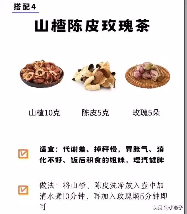 做法:山楂+陳皮煮10分鐘,加玫瑰燜5分鐘。