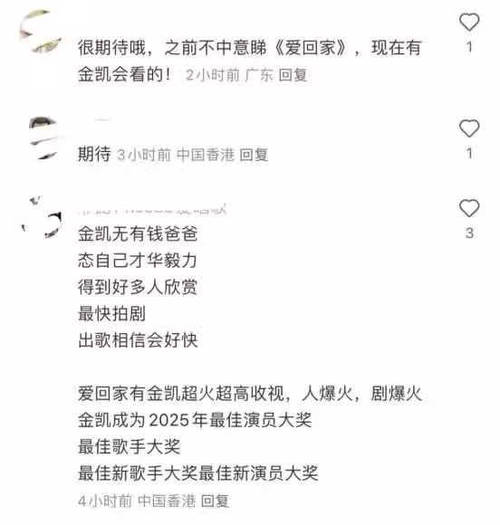 同時梁耀還向外界透露,李金凱會在6月份時在劇中亮相。對此很多網民都表示十分期待,也有網民稱自己之前並不喜歡看《愛回家》,但因為李金凱的加入,會特意去看。