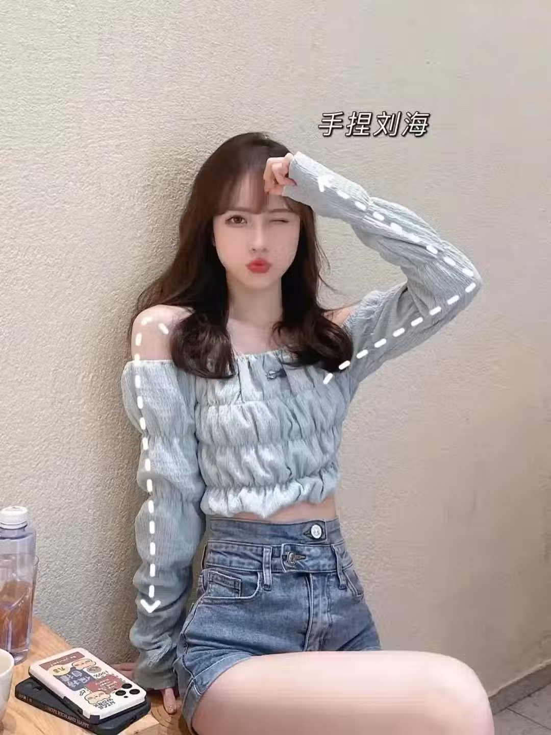 8. 反手摸頭髮,雙腿自然收攏