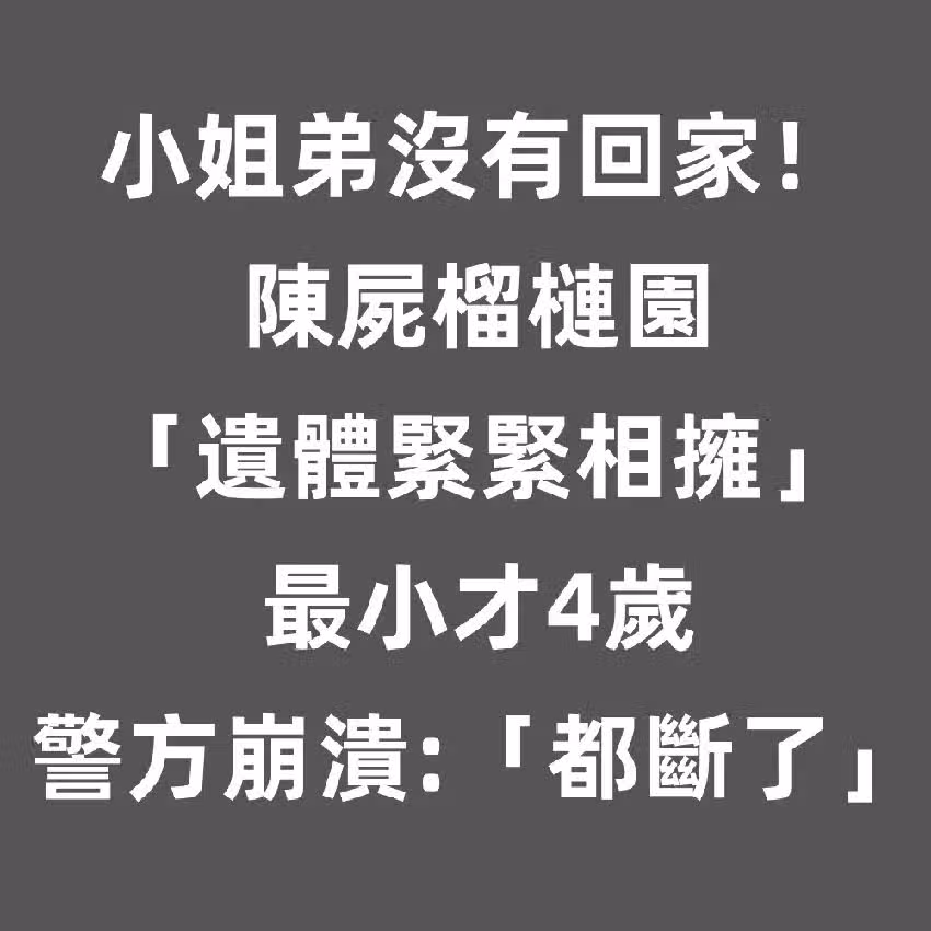 小姐弟沒有回家!陳屍榴槤園「遺體緊緊相擁」最小才4歲 警方崩潰:「都斷了...」