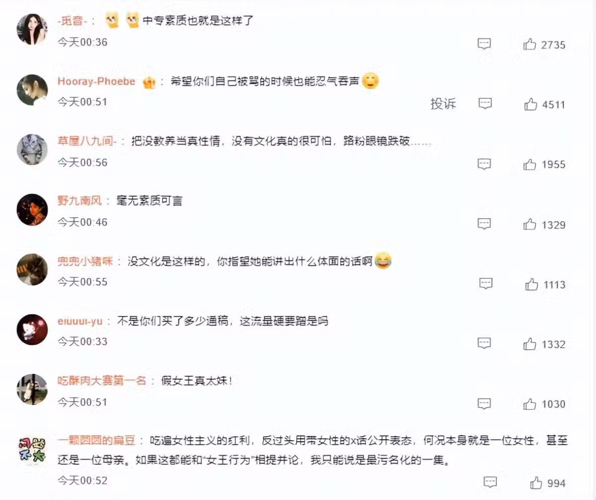 不過,她的回應卻遭到了許多網友們的嘲諷,認為趙麗穎毫無素質可言,還吐槽她「中專素質也就這樣了」、假女王真太妹。
