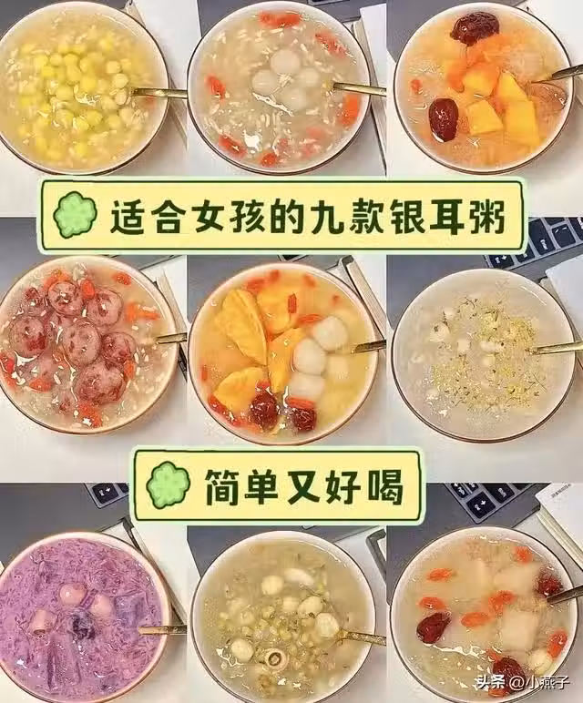 姐妹們,今天給大家分享9款銀耳粥,每天一碗輕鬆養出透亮,銀耳富含植物膠質,潤肺養顏又低脂,新手也能輕鬆駕馭,快收藏跟著煮吧!