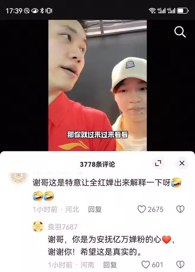 謝思埸發全紅嬋視頻解釋為什麼腳踝傷了還去武漢,評論區全是質疑