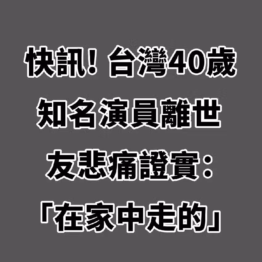 快訊/台灣40歲知名演員離世❗ 友悲痛證實:「在家中走的...」