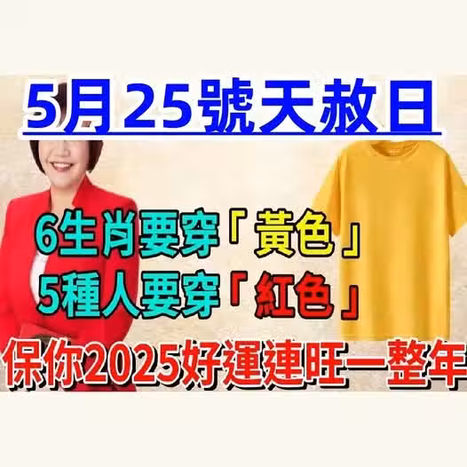 算命師說:5月25號天赦日!6生肖要穿黃色,5種人要穿紅色,保你平平安安災難消除!2025好運連旺一整年!