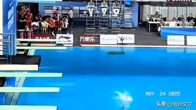 陳芋汐武漢體育館預賽勝出,觀眾席上打出陳芋汐字幅