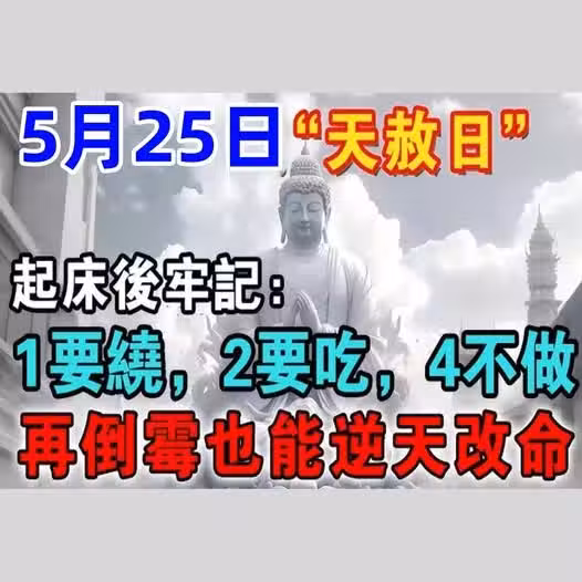 非常靈驗!5月25號「天赦日」,起床後牢記:1要繞,2要吃,4不做,再倒霉也能逆天改命,讓你從年頭旺到年尾