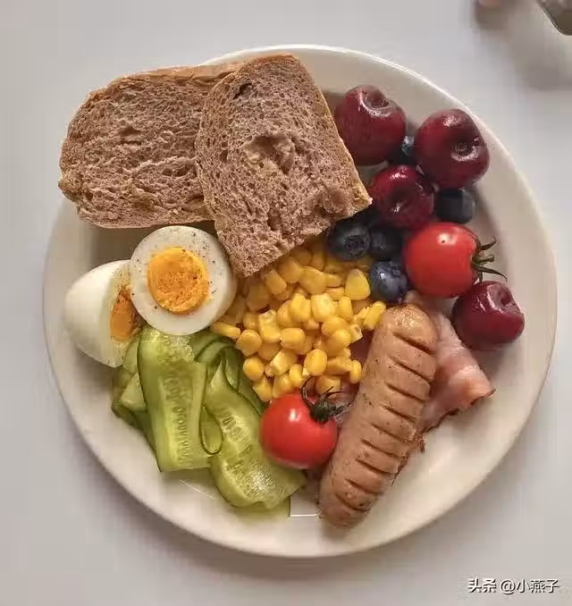 亮點:玉米提前煮10分鐘冷藏,早晨微波爐加熱30秒,培根用空氣炸鍋180℃烤5分鐘更低脂!