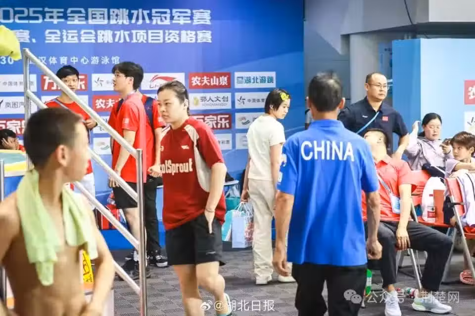 5月24日,2025年全國跳水冠軍賽在武漢揭幕。因傷病缺席賽事的全紅嬋來到賽場為廣東隊友加油。
