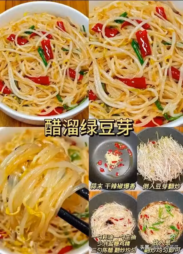 食材:綠豆芽200g+陳醋3勺+干辣椒。