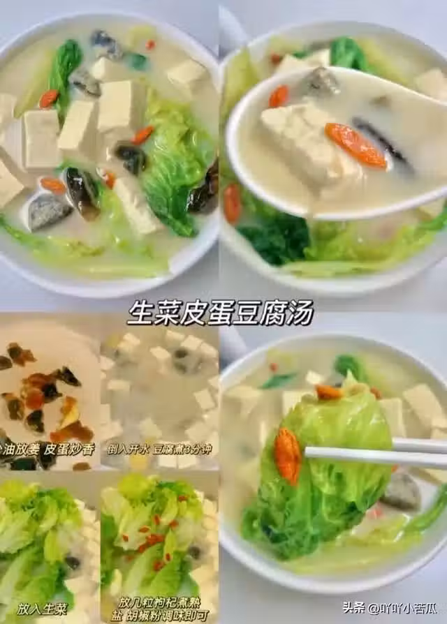 1. 皮蛋煎香後加開水煮3分鐘至湯色變白!