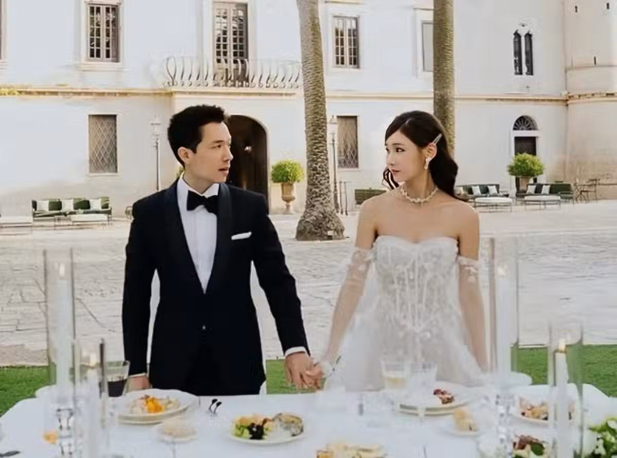 兩人在義大利的婚禮,可以說非常浪漫和豪華。從照片可以看到,兩人結婚選擇了在某莊園舉行。婚禮不僅設有晚宴,同時還是西式的草坪儀式,非常幸福。