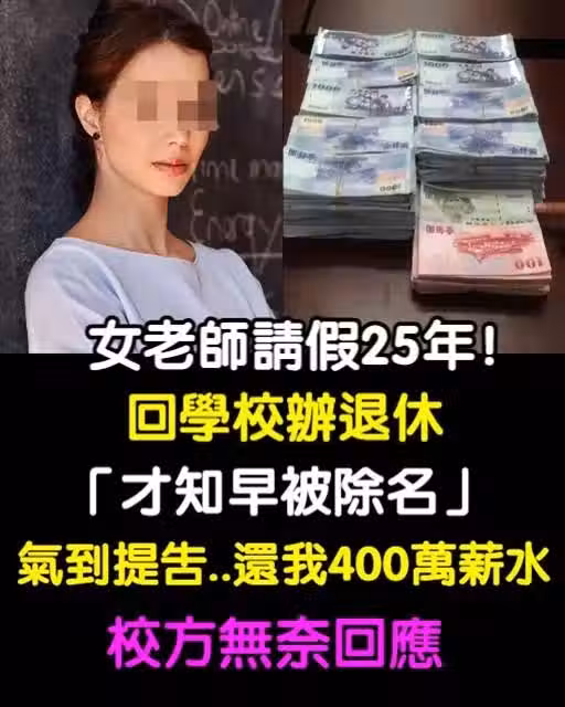 女老師請假25年!回學校辦退休「才知早被除名」氣到提告「還我400萬薪水」校方無奈回應