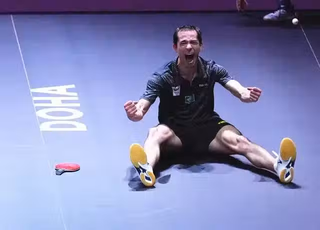 雨果的成長曆程堪稱一部熱血勵志片,8歲在里約熱內盧接觸桌球的他,面對的是一塊貧瘠的土壤,巴西桌球基礎設施匱乏,職業訓練體系幾乎為零,14歲時,他毅然選擇遠赴歐洲,自費參加訓練和比賽,沒有教練團隊、沒有贊助支持,雨果一度被稱為「孤獨追夢者」,即便如此,他憑藉獨創的「桑巴步伐」、高達8900轉/分鐘的反手擰拉技術以及122公里/小時的正手爆沖球速,逐漸在國際賽場嶄露頭角,國際乒聯評價他「以暴力美學打破歐亞壟斷,為桌球全球化注入新動力」