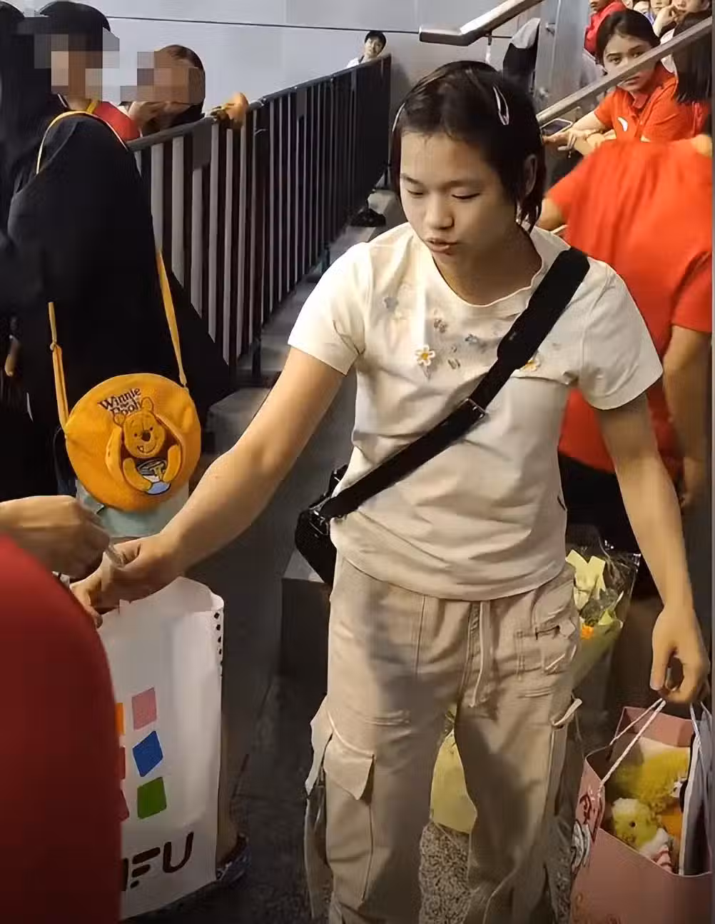這不在全紅嬋出現在廣東隊觀眾席上給好朋友陳藝文加油打氣的時候,有不少粉絲也接連不斷的給她送禮物要簽名,還有重慶鐵粉特意跑來武漢給嬋寶送上了榴槤花束,真的很暖心了。