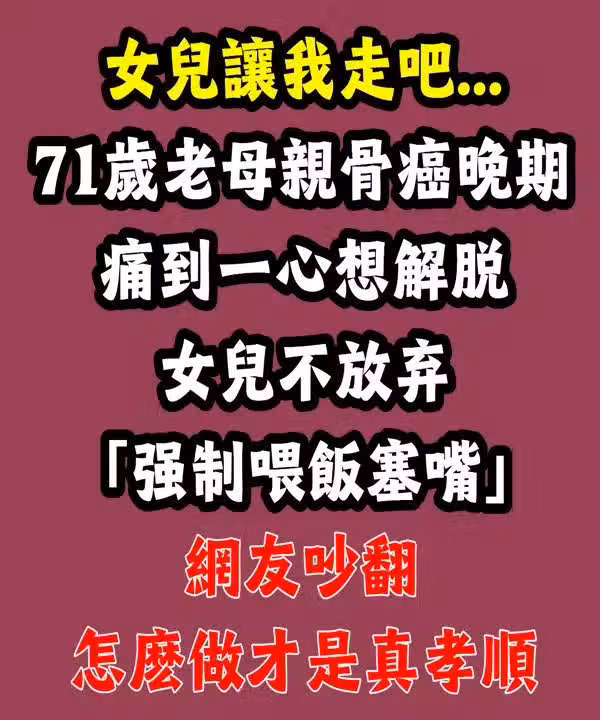 癌細胞侵入骨組織,像上百隻蟲子啃咬的灼燒脹痛,時刻折磨著奄奄一息的老母親。