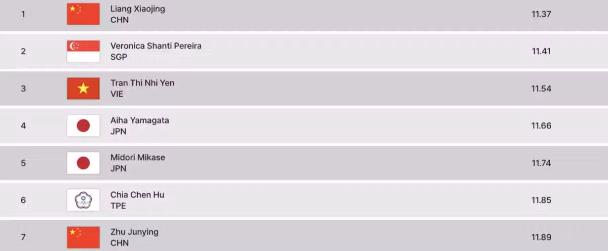 決賽中,梁小靜位於第三跑道。比賽一開始,梁小靜啟動很快。5米過後,梁小靜就位居第一。隨後的比賽,來自新加坡的衛冕冠軍佩雷拉拚命追趕。但梁小靜還是把優勢守到最後。最終,梁小靜以11秒37第一個衝過終點。佩雷拉以11秒41位居第二,越南選手11秒54季軍。另外一名中國運動員朱俊穎發揮一般,僅獲得第七名。