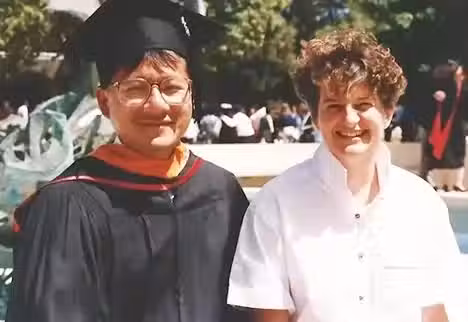 據《三立新聞網》報導,在奧勒岡州立大學(Oregon State University)就讀時,17歲的黃仁勛因跳級而成為班上年紀最小的學生,他與Lori因此成為同班同學,還變成實驗課搭檔。對太太一見鍾情的黃仁勛為了追求,每到周末就以討論功課為藉口相約見面,但始終不敢透露自己年紀比對方小的事實。