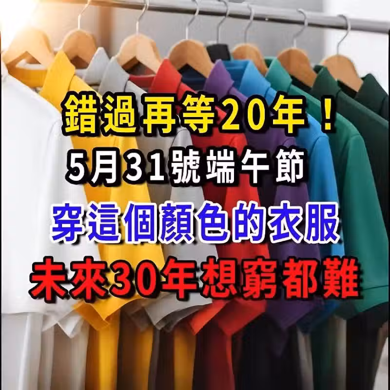 根據流年與五行變化,今年的端午節財星與文昌星同時高照,形成「雙吉日」,這樣的天象組合要再等一個完整大周期,至少20年才會再出現一次!穿對顏色,等於你主動打開天運通道,為自己招來財富與好運。