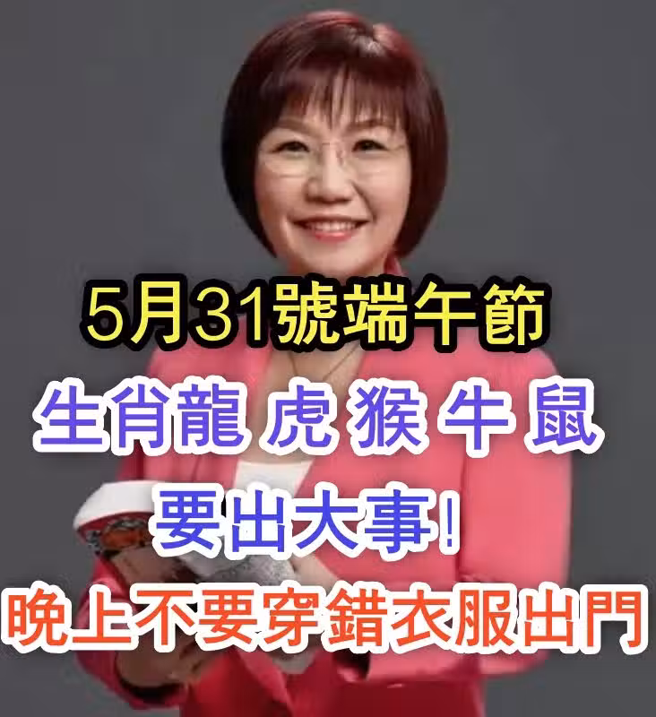 🚨5月31號端午節,生肖龍、虎、猴、牛、鼠請注意!