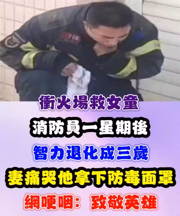 沖火場救女童!消防員一星期後「智力退化成三歲」 妻痛哭「他拿下防毒面罩」網哽咽:致敬英雄