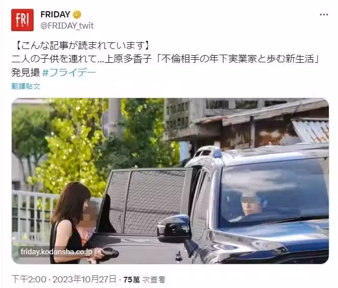 據了解,上原多香子在事跡敗露後,索性帶著孩子們離開家中,並租下某處公寓生活,並未告訴高山和也去向。