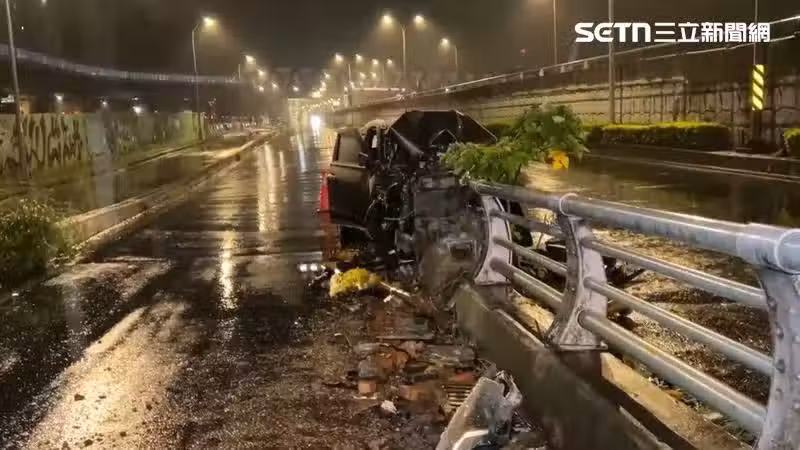 ▲新北市新店區今天(4日)凌晨發生嚴重自撞車禍。(圖/翻攝畫面)