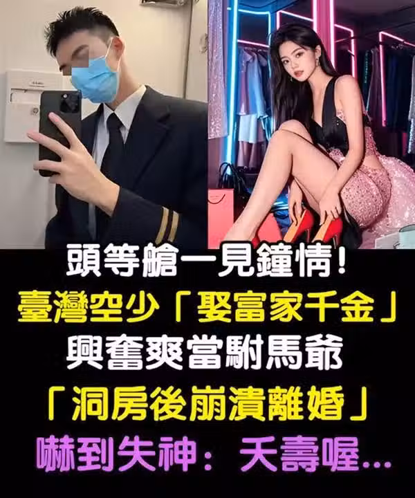 頭等艙一見鍾情! 台灣空少「娶富家千金」爽當駙馬爺「洞房後崩潰離婚」 嚇到失神: 夭壽喔
