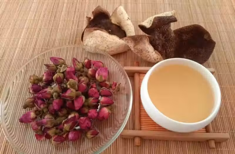 功效:陳皮理氣健脾,玫瑰花疏肝解郁、活血散瘀。兩者搭配,能有效舒緩氣鬱,調節情緒,促進氣血運行,對乳腺結節有一定的改善作用。