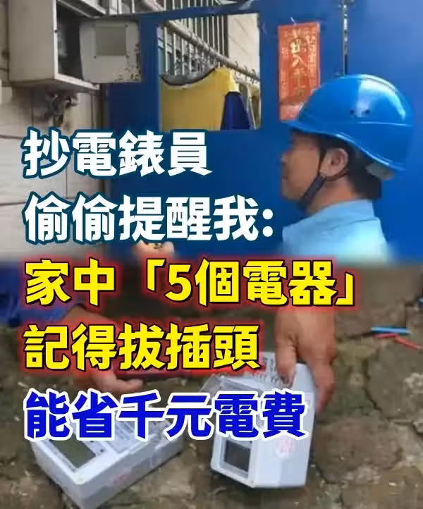 抄電錶員偷偷提醒我:家中「5個電器」,記得拔插頭,能省千元電費