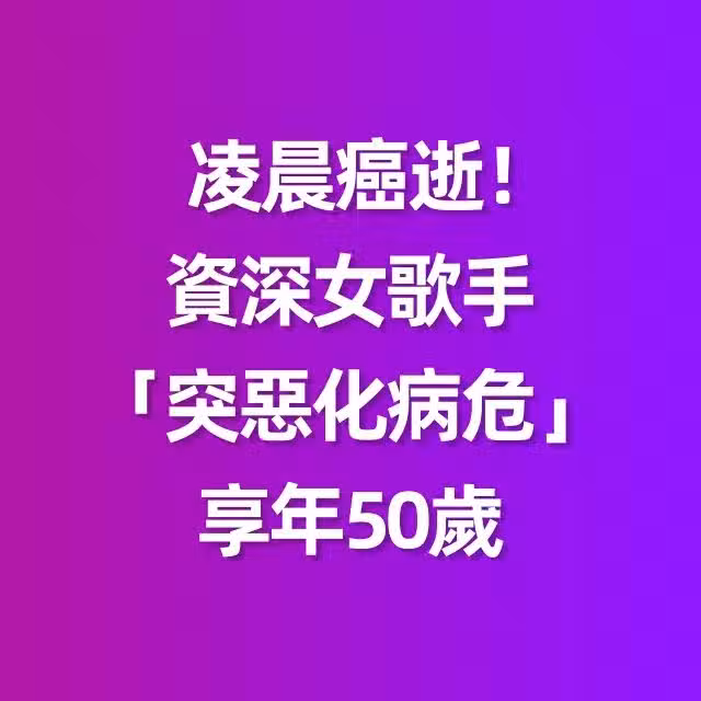 凌晨癌逝!資深女歌手「突惡化病危」享年50歲 昔勇敢「公開坎坷經歷...」丈夫悲慟:趕去還是來不及