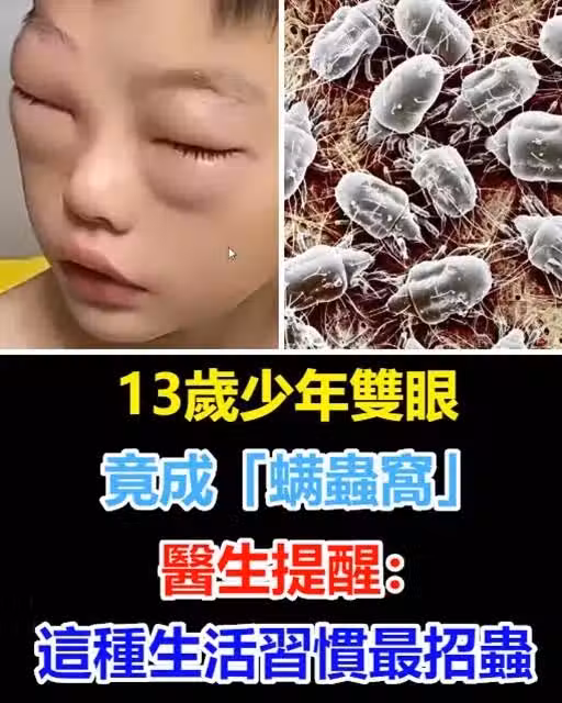 13歲,豆蔻年華,結果一名男孩因眼睛皮膚癢紅腫,被查出睫毛根部密密麻麻爬滿了蟎蟲。