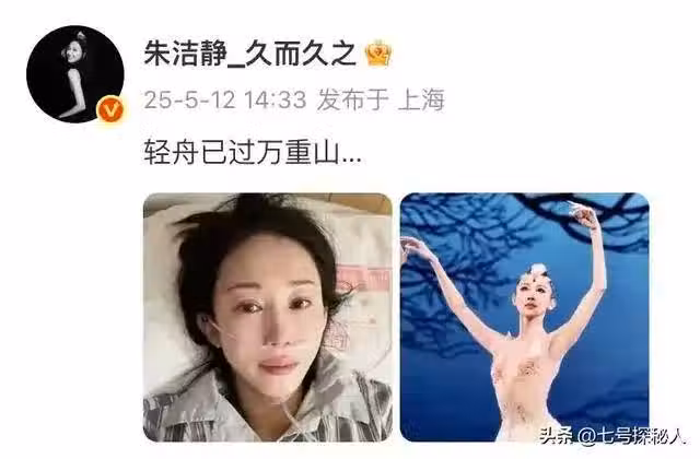5月11日,朱潔靜在社交平台曬出躺在床上的照片。