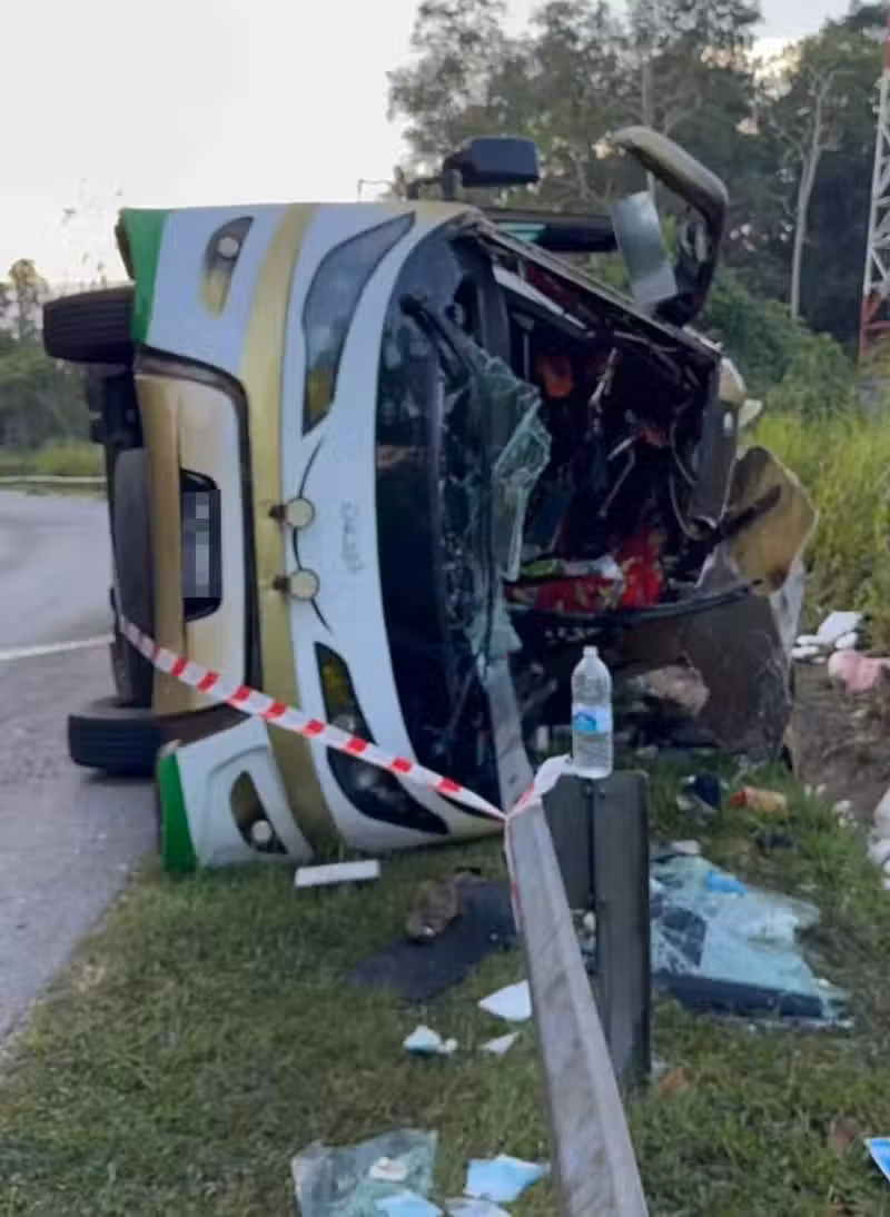 大學生巴士翻覆15人喪命|現場最新畫面曝光! 巴士呈90度翻覆路邊