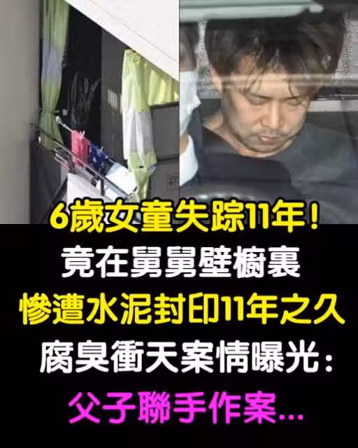 6歲女童失蹤11年!竟在舅舅壁櫥里「慘遭水泥封印」「11年之久」腐臭沖天案情曝光:父子聯手作案