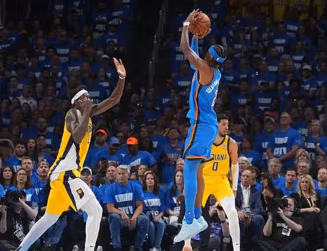 今年季後賽亞歷山大場均30.4分5.6板6.8助攻1.8搶斷0.6蓋帽,命中率47.4%,雷霆拿到總冠軍的希望很大,亞歷山大有望成為繼賈巴爾、喬丹、奧尼爾後,NBA第4個單賽季包攬得分王+MVP+FMVP的球員。
