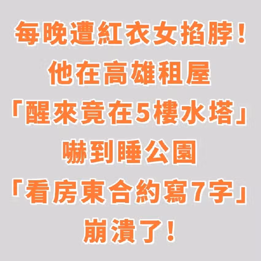 每晚遭紅衣女掐脖!他在高雄租屋「醒來竟在5樓水塔」...嚇到睡公園「看房東合約寫7字」崩潰了