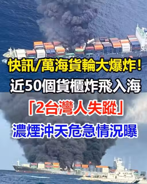 快訊/萬海貨輪大爆炸!近50個貨櫃炸飛入海「2台灣人失蹤」濃煙沖天危急情況曝