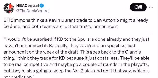 敲定交易!杜蘭特聯手少林「高僧」!時隔五年,馬刺三巨頭回來了