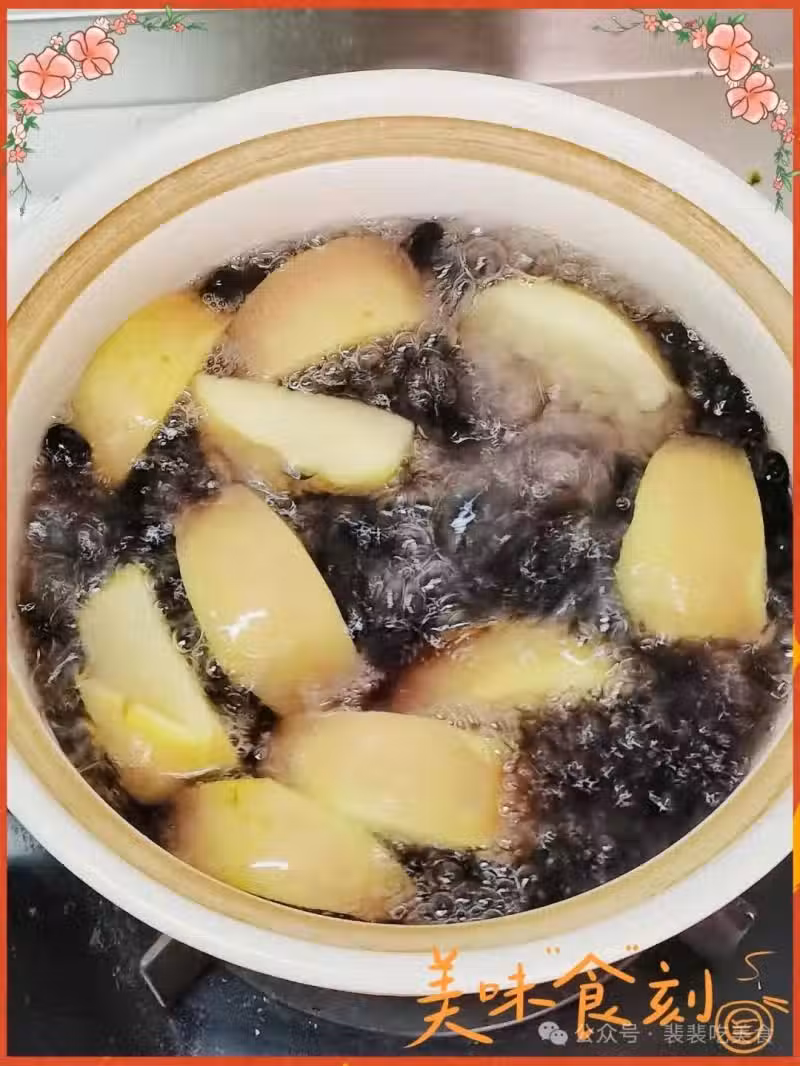黑豆15克、蘋果1個(中等大小)、冰糖5顆(黑豆選顆粒飽滿、切開有綠心的新鮮豆子)