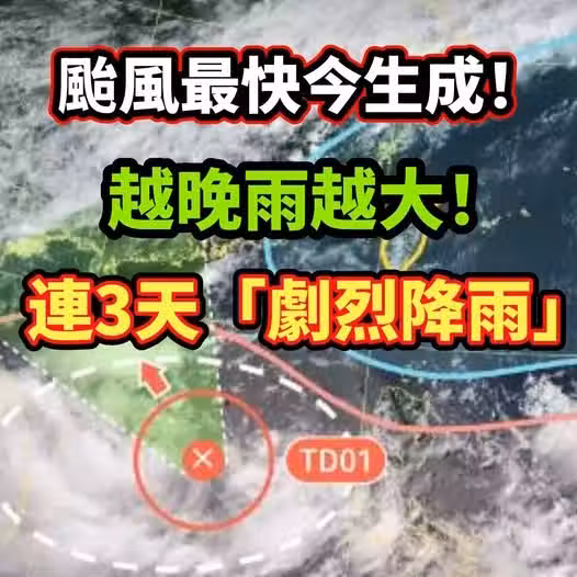 快訊 / 颱風最快今生成!越晚雨越大,連3天「劇烈降雨」!